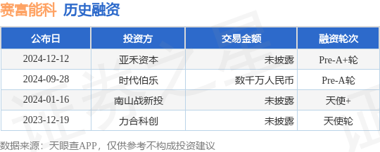 证券之星消息,根据天眼查APP于12月12日公布的信息整理,赛富能科技(深圳)有限公司Pre-A+轮融资,融资额未披露,参与投资的机构包括亚禾资本。