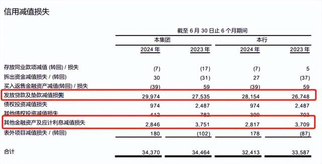 根据中报,中信银行的信用减值损失主要集中在发放贷款及垫款减值损失、其他金融资产及应计利息减值损失,金额分别为299.74亿元、28.46亿元,前者同比增加24.39亿元。