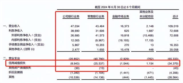 分业务看,银行业务、零售银行业务的信用减值损失分别为89.43亿元、255.37亿元,前者同比减少52.11亿元,后者猛增75.97亿元。另外金融市场业务损失为10.44亿元,同比减少13.17亿元。